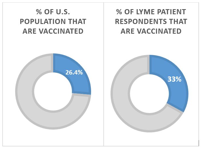 Sixteen percent of patients who report having been vaccinated were actively on antibiotic treatment for Lyme disease when they received their shots. Nearly 93% of those vaccinated recommend that their friends and family receive the vaccination when able.