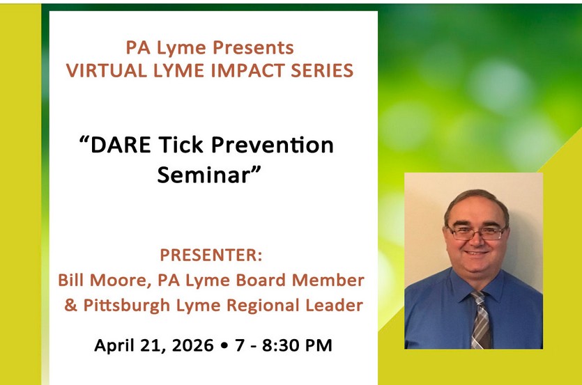 Registration is limited to first 500 people.  To register click here.  If you miss the cutoff for registration please go to the PA Lyme Resource Network Facebook Page to see a livestream of the webinar.