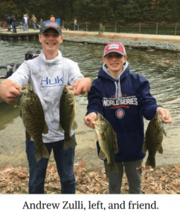 Andrew and his teammate Jack were one of thirty-five teams in the Bass championship. Raystown Lake is so difficult to fish, it has seen professionals throw in the towel and not compete there. Many of the high school teams didn’t catch any fish that Saturday. A handful of teams caught the 5 limit to be weighed for the highest weight. Andrew and Jack placed third.